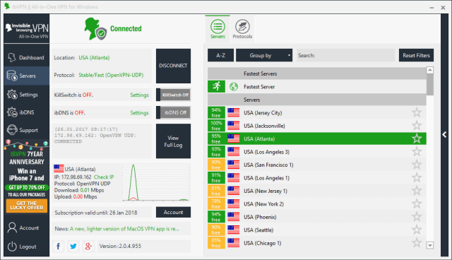 易于使用,只需要轻点一个按钮就可以连接最快的VPN服务器。